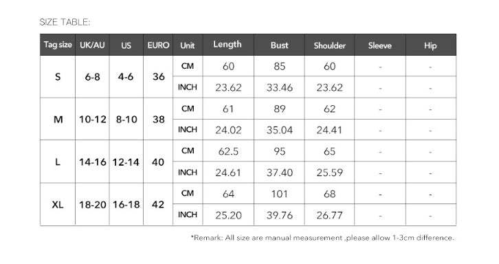 Please keep in mind that Asian sizes are generally 1 to 2 sizes smaller than European and American sizes. If you're between sizes, it's advisable to choose the larger size. Allow for a 2-3cm difference due to manual measurement. Check the size chart carefully before purchasing. If you need assistance, don’t hesitate to reach out to our customer service.