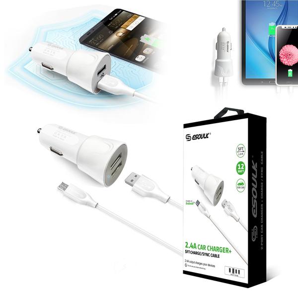 Esoulk 12W 2.4A Dual USB Travel Car Charger With 5FT Micro USB Charging Cable