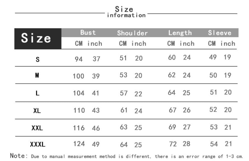 Note that Asian sizes tend to run smaller than European and American sizes. If your measurements fall between two sizes, we recommend choosing the larger option for a more comfortable fit. Always check the size chart before making your purchase to ensure an accurate fit. Also, please allow for a slight variation of 2-3cm due to manual measurement.