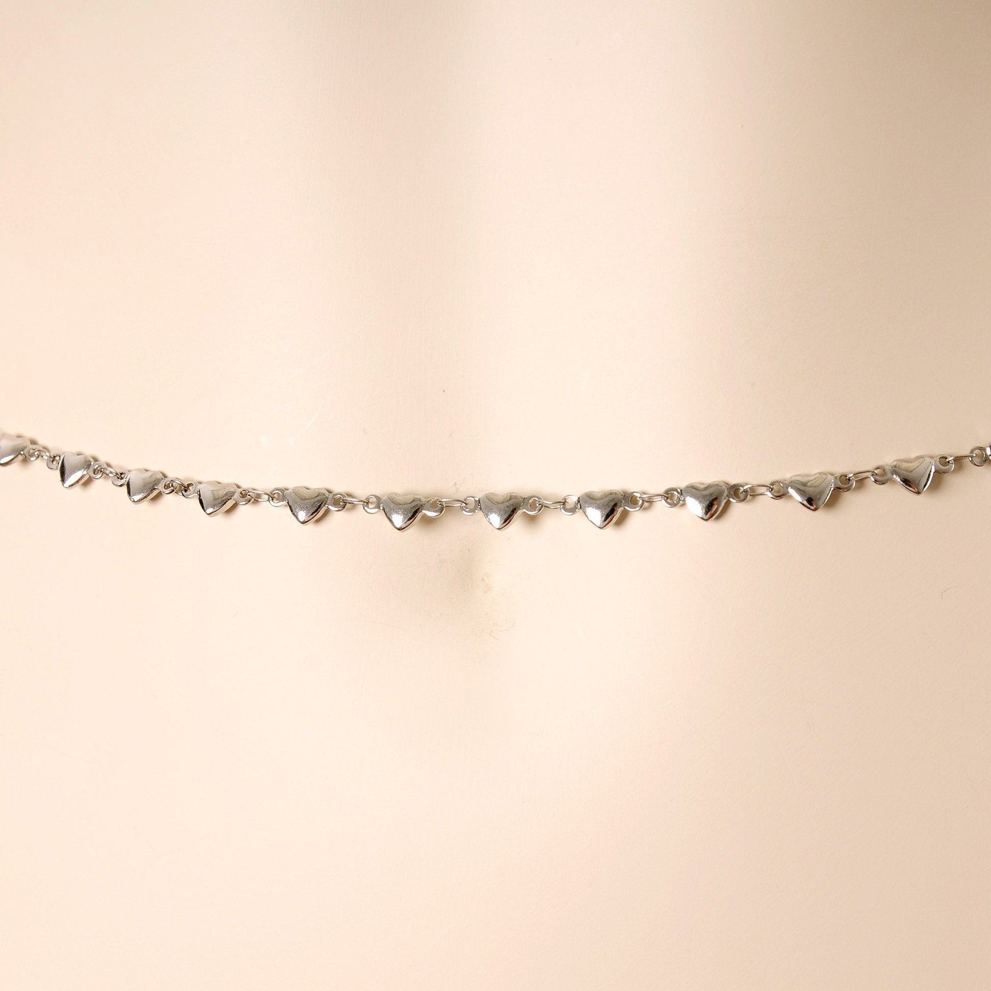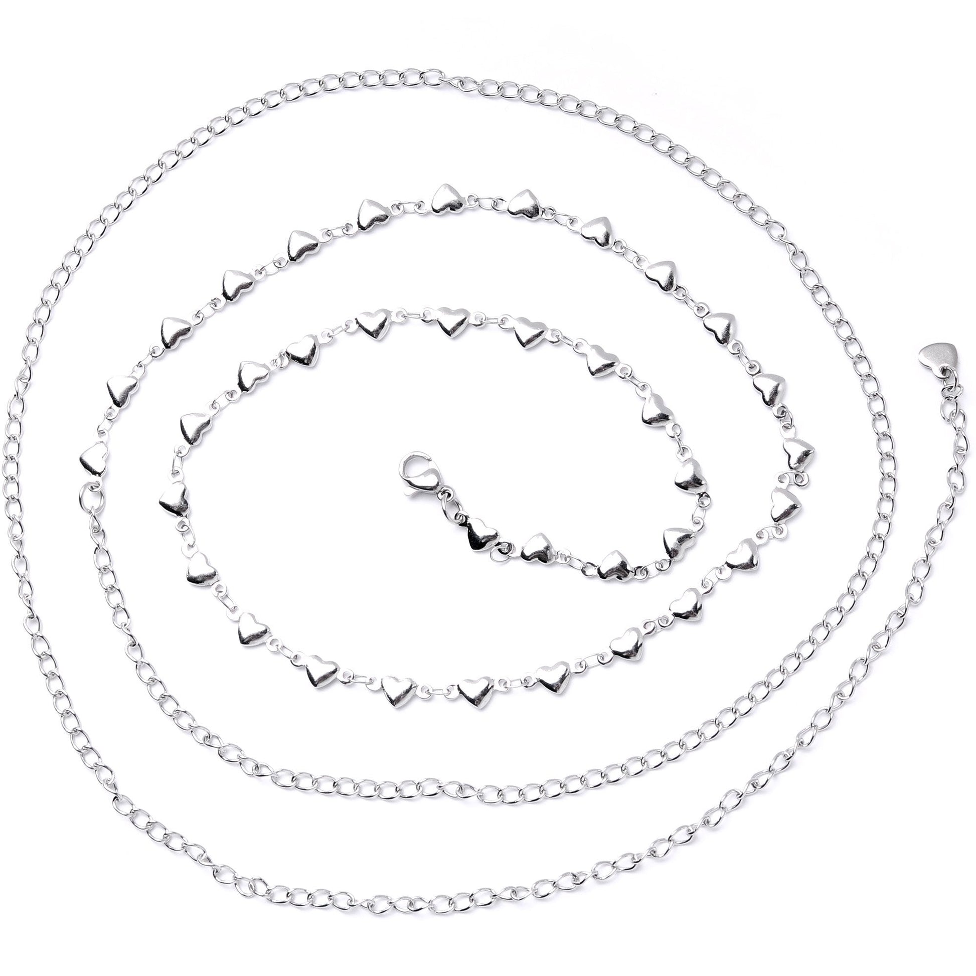 Don't let that midriff go bare when you wear your favorite halter top or belly shirt. This sexy belly chain jewelry which is 42" in length will enhance your waistline and is the perfect fashion accessory for a day at the beach or a night out. This Valentine's Day inspired waist belt features hearts interspersed along the chain as well as a lobster clasp used to adjust the size of the body jewelry.