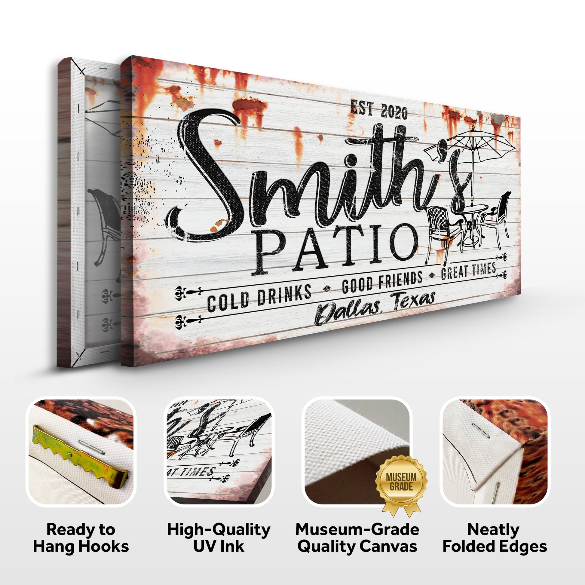 If you're looking for a way to add a little rustic charm to your family patio, our family patio sign on canvas is the perfect way to do it. This family patio wall art features a charming design that will look great in any outdoor space. The family patio canvas print is also a great way to add a pop of color to your patio furniture.