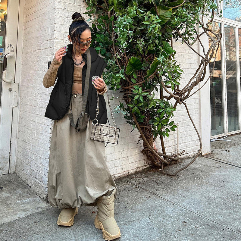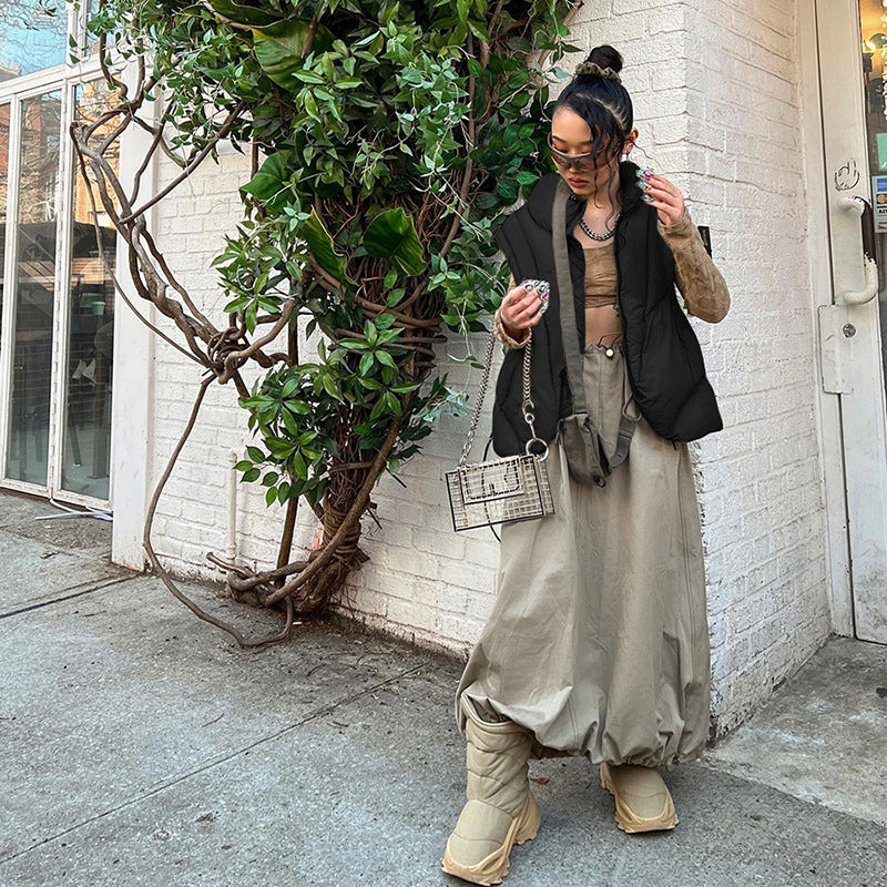 Fashion Stand Collar Solid Color Thickened Short Vest Cotton Coat