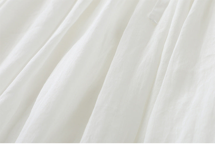 The dress features a solid color pattern, crafted from a blend of high-quality cotton and linen. This breathable fabric ensures you stay cool and comfortable throughout the day, making it ideal for warmer weather or layered with a jacket during the cooler months. Available in two stunning colors—white and lotus root—this dress offers versatility and elegance that easily adapts to your personal style.