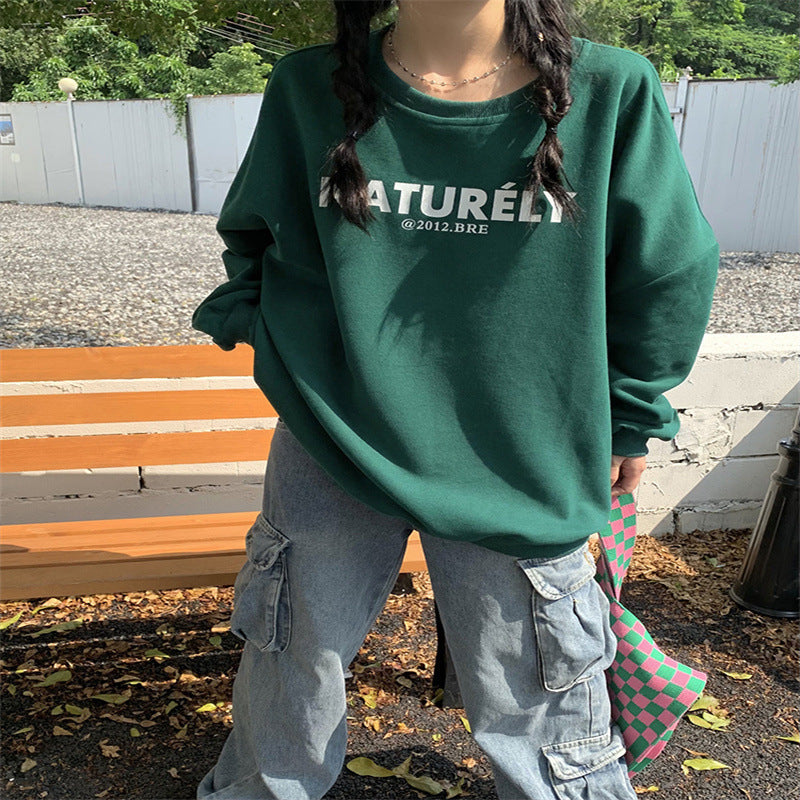 Embrace comfort and style with the Fleece-lined Letter Print Neck Loose Long Sleeves Sweater and make a fashion statement that’s sure to turn heads!