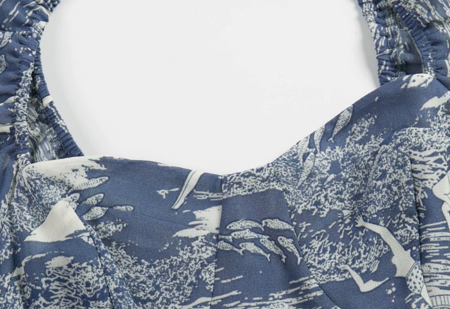 Indulge in elegance with the French Vintage Ruffled Shoulder Strap Slim Fit Slimming Slit Sling Dress. This stunning dress elegantly combines a slim fit design with charming ruffled shoulder straps, making it a perfect addition to any wardrobe for those looking to elevate their style. The beautiful printing pattern adds a touch of sophistication, while the mid-length skirt flows gracefully, ensuring all-day comfort and confidence.
