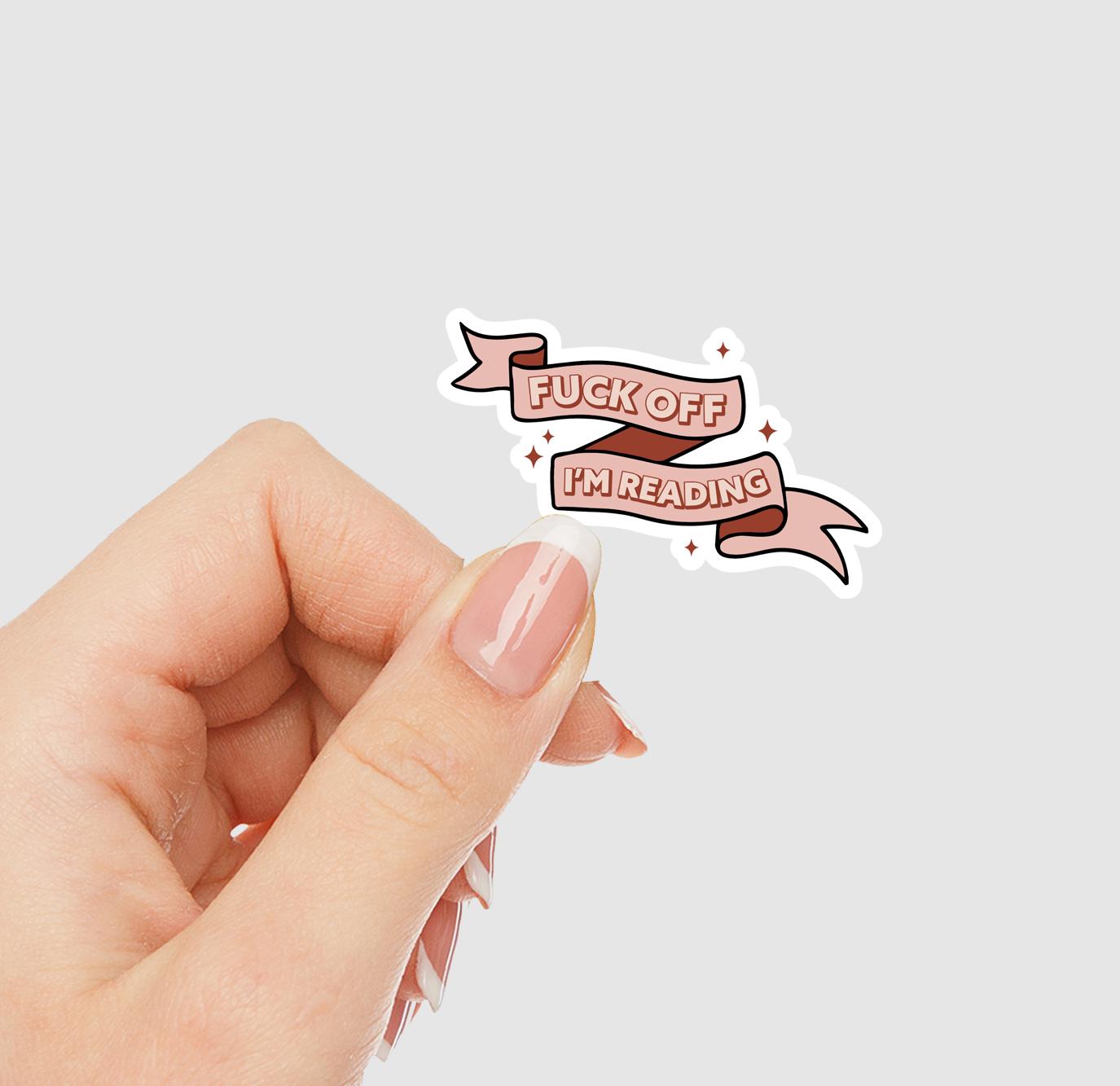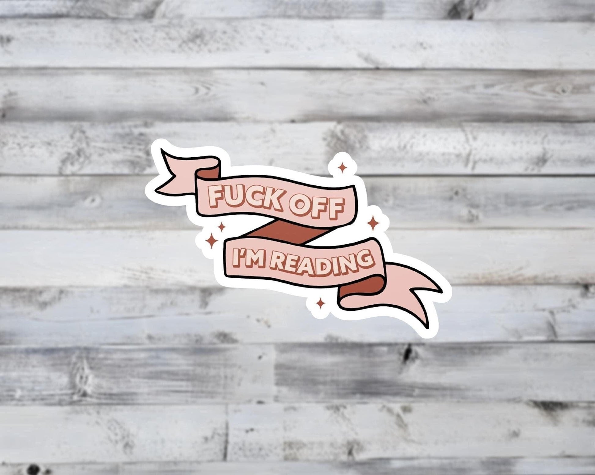 Our Fuck Off I'm Reading Vinyl Sticker is waterproof, durable, and perfect for personalizing your laptops, water bottles, phone cases, tablets, Kindles, planners, notebooks, journals, tumblers, mugs, mirrors, cars, motorcycles, and more!
