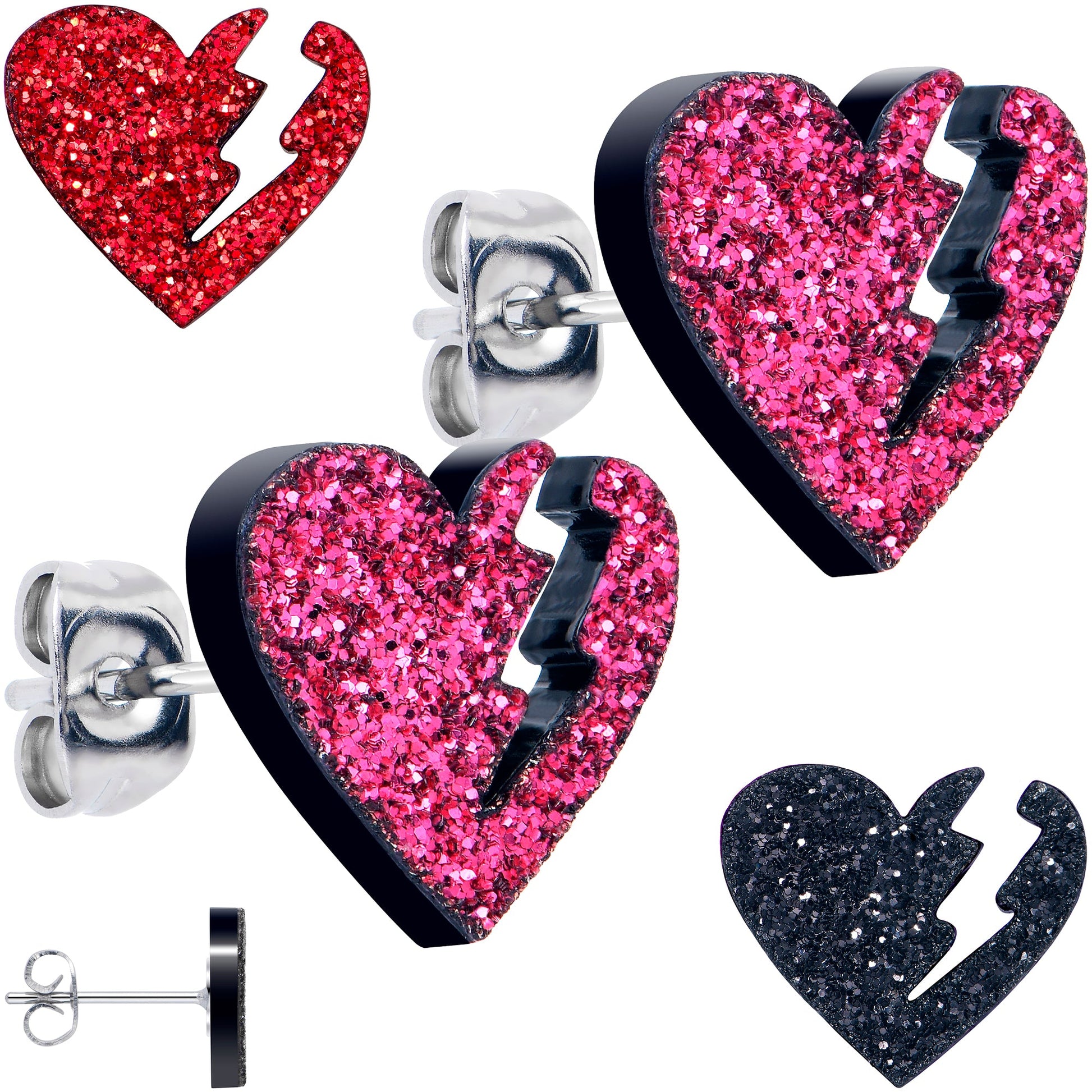 Glitter Heartbreaker Broken Heart Stud Earrings