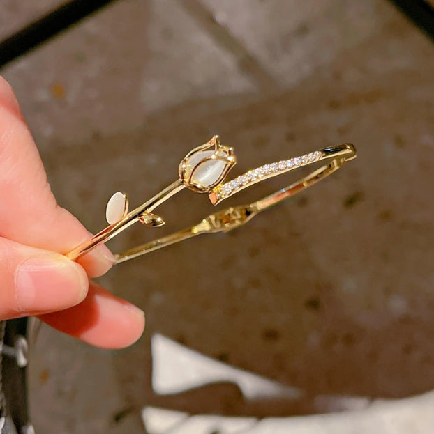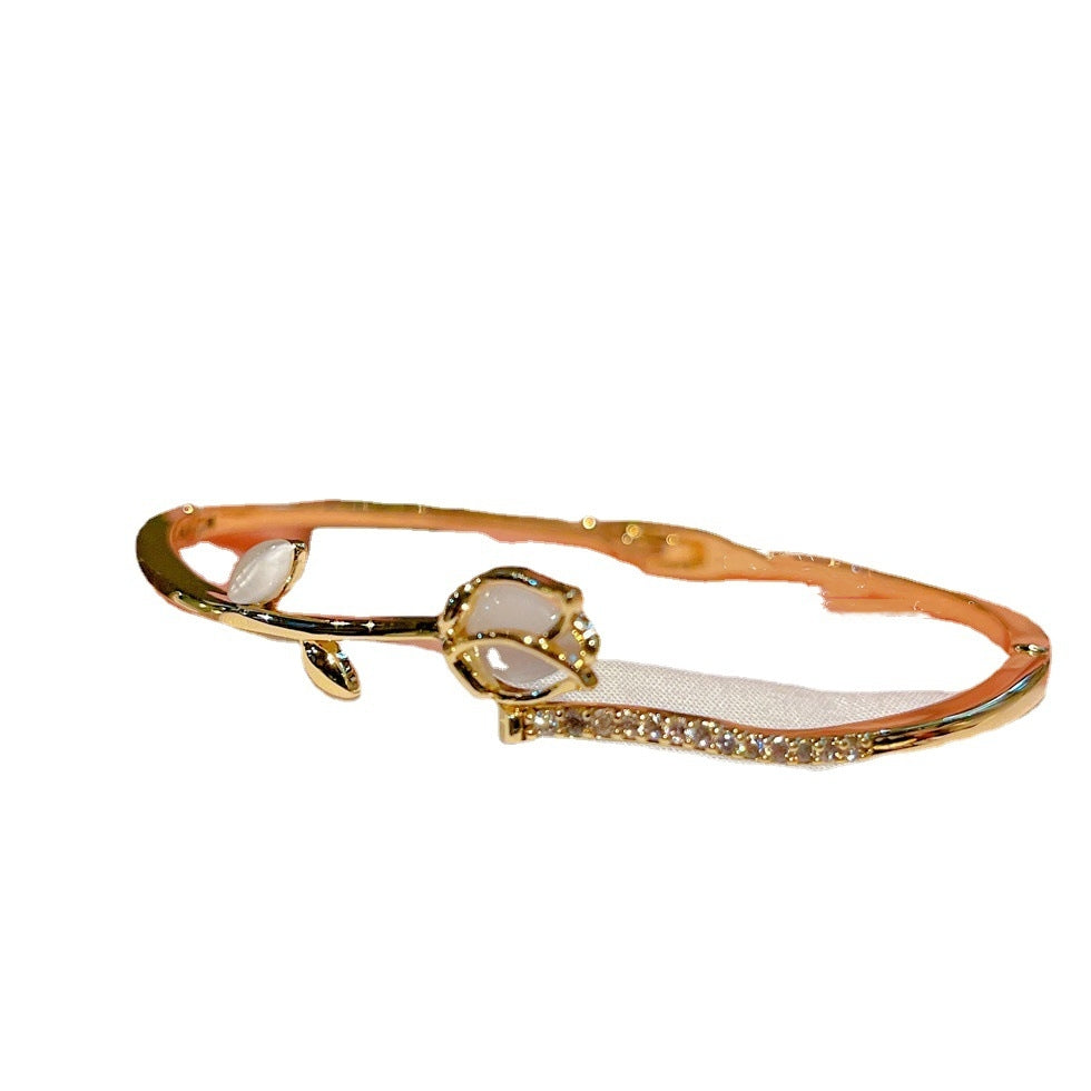 The bracelet features a stunning rose design in a soft blush hue, capturing the essence of blooming roses. Its delicate craftsmanship and romantic color make this piece a versatile addition to your jewelry collection. Whether you’re dressing up for a formal dinner or looking to add a touch of sophistication to your everyday look, the Glossy Rose Small Rose Bracelet is guaranteed to impress.