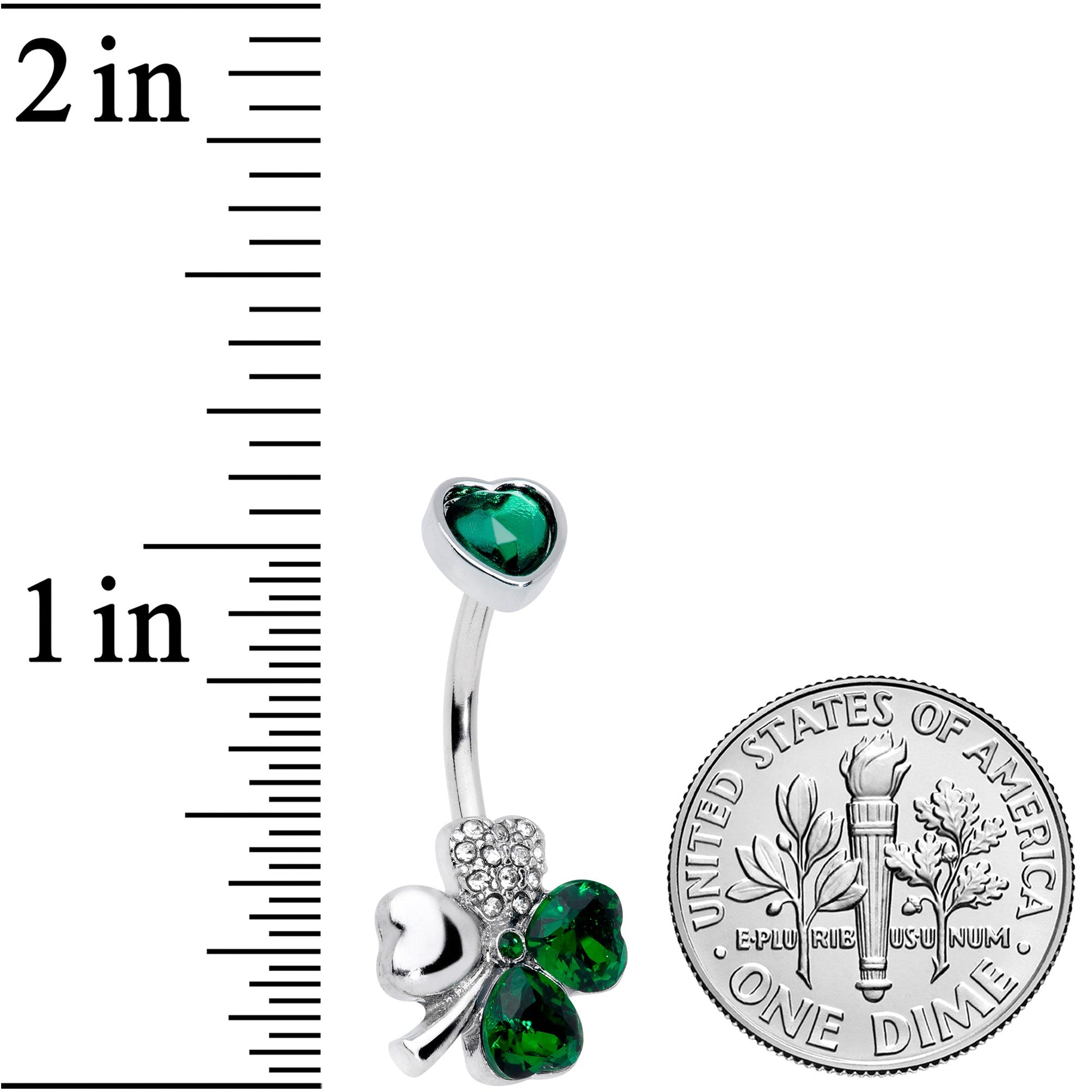 Green Clear Gem Heart Shamrock St Patricks Double Mount Belly Ring
