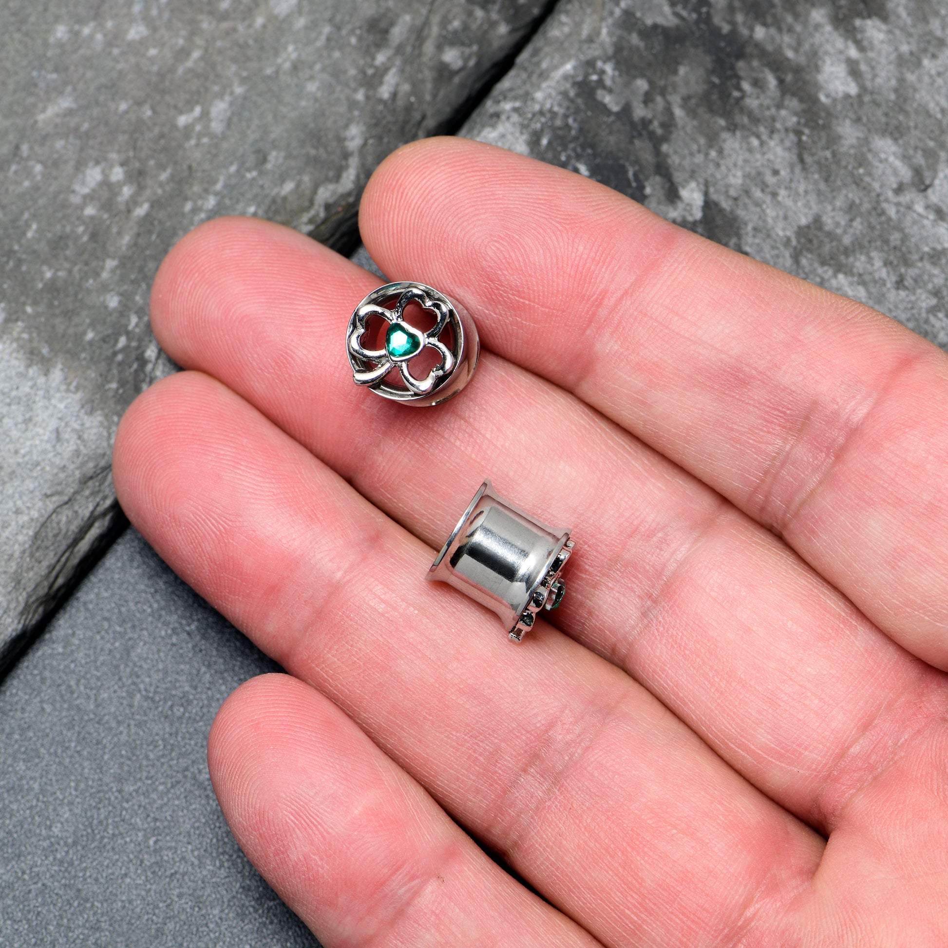 Green Gem Heart Shamrock St Patricks Tunnel Plug Set Sizes 10mm to 16mm