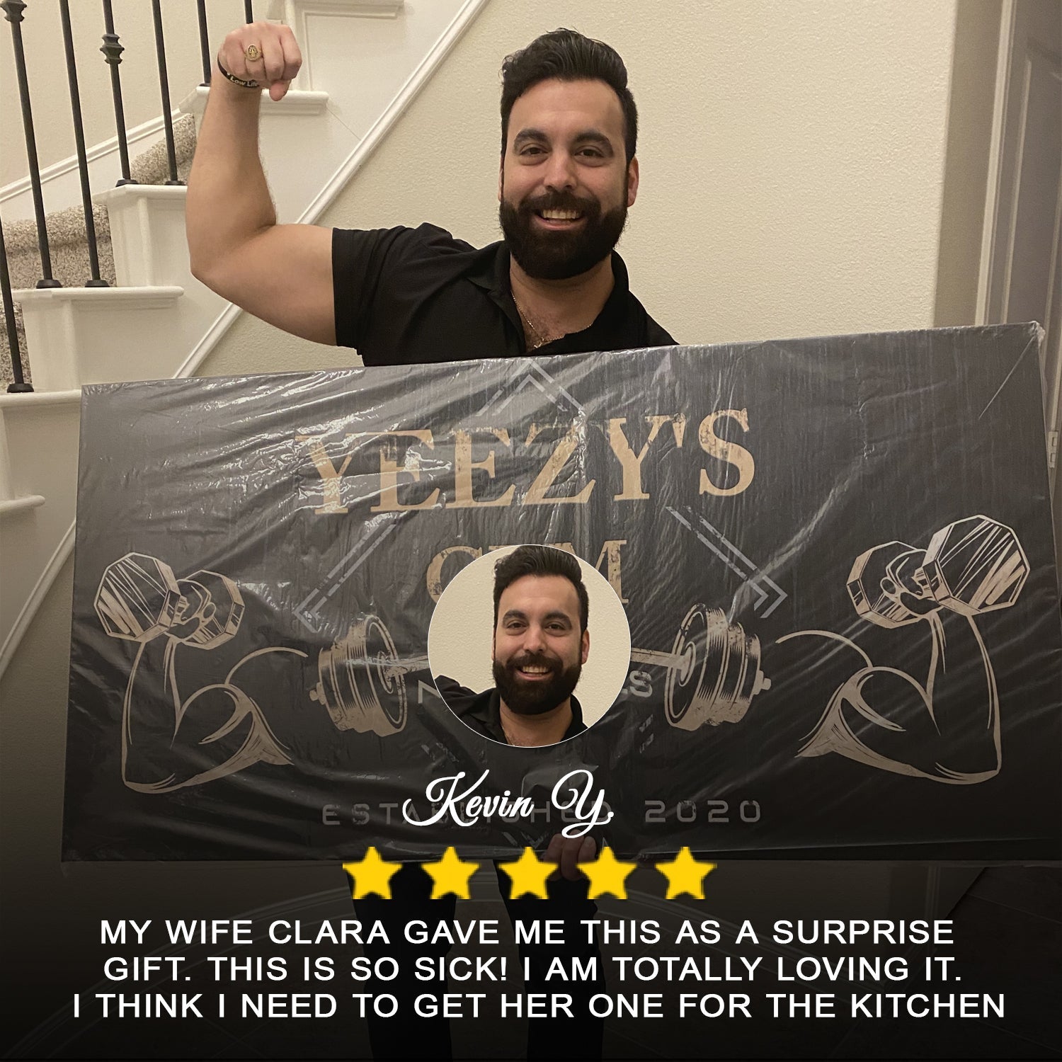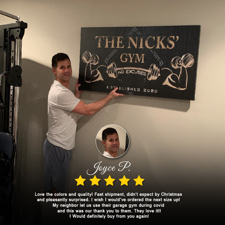 This sign will really tie your personal gym room together! You’re going to love the stained wood pattern and weathered lettering for that authentic antique look.