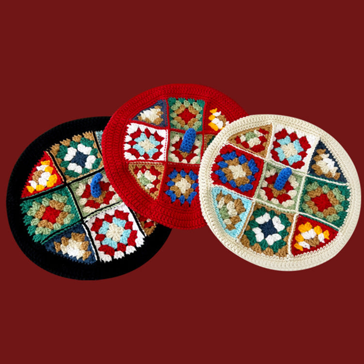 Hand-woven Flower Contrast Color Knitted Hat Women