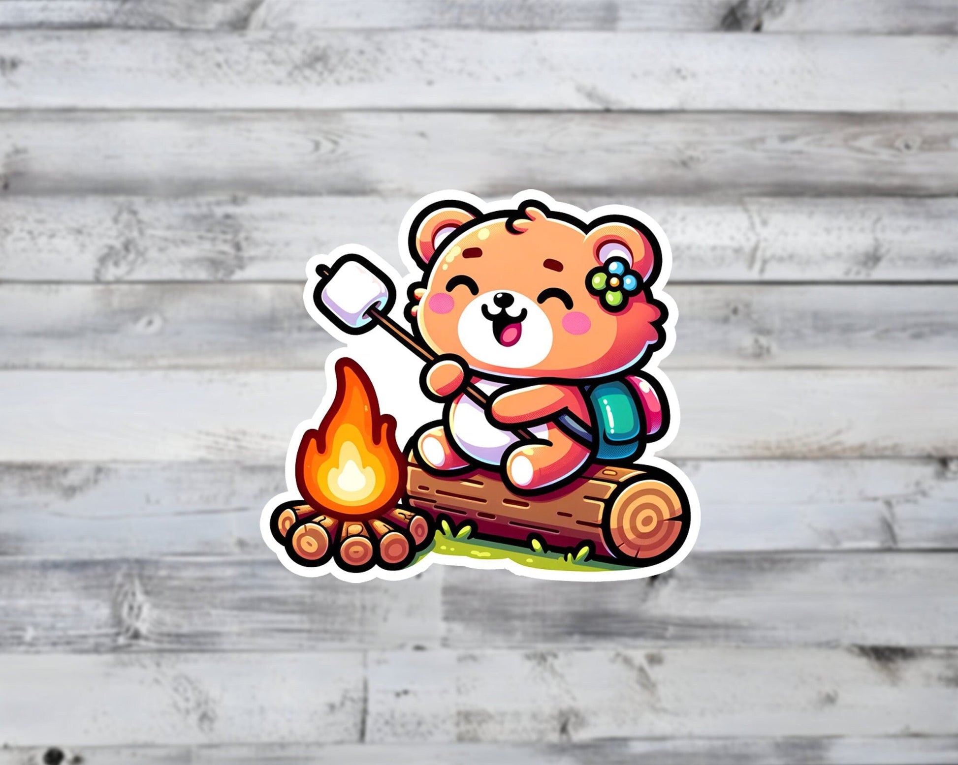 Our Happy Camper Kawaii Bear Vinyl Sticker is waterproof, durable, and perfect for personalizing your laptops, water bottles, phone cases, tablets, Kindles, planners, notebooks, journals, tumblers, mugs, mirrors, cars, motorcycles, and more!