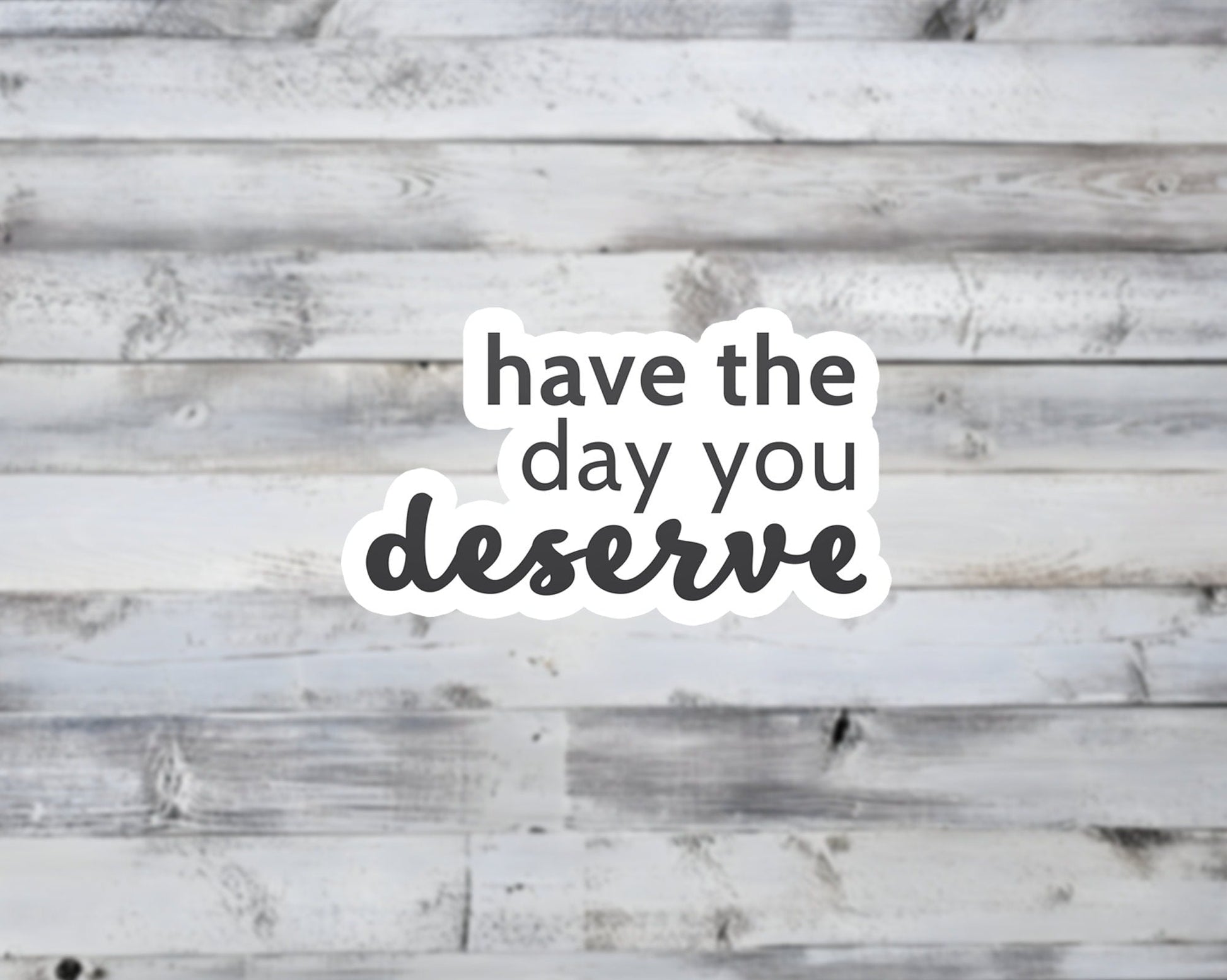 Our Have The Day You Deserve Vinyl Sticker is waterproof, durable, and perfect for personalizing your laptops, water bottles, phone cases, tablets, Kindles, planners, notebooks, journals, tumblers, mugs, mirrors, cars, motorcycles, and more!