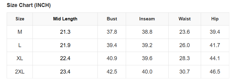 See size chart for approximate measurements.
