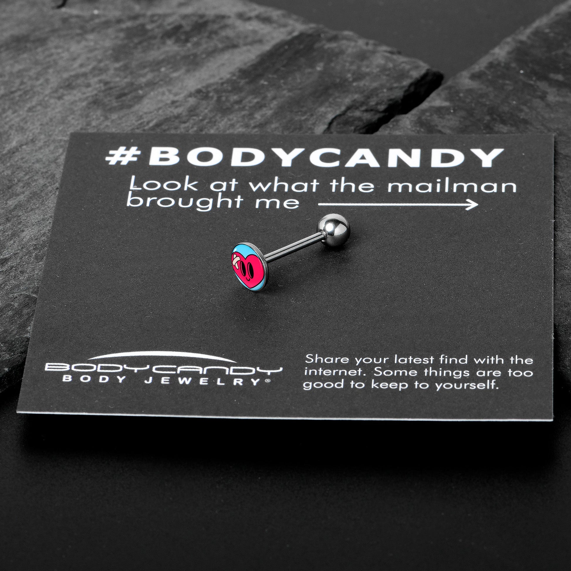 Hypoallergenic jewelry for sensitive skin.Heartbreak Bandaged Heart Barbell Tongue Ring