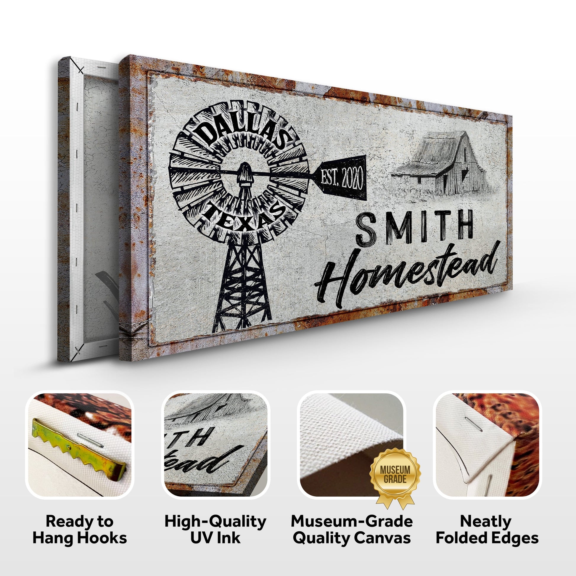 The Homestead sign is a fantastic way to show your uniqueness and a beautiful way to add color and style to your home. By giving your canvas print some personality right away, you can bring your farm to life!