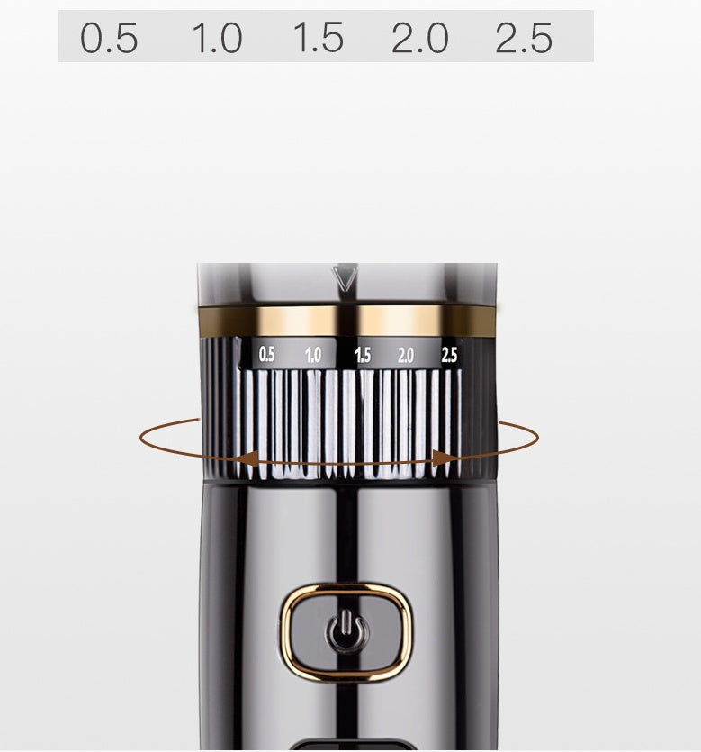 - Five-level fine-tuning options (0.5mm to 2.5mm) for precise hair cutting.