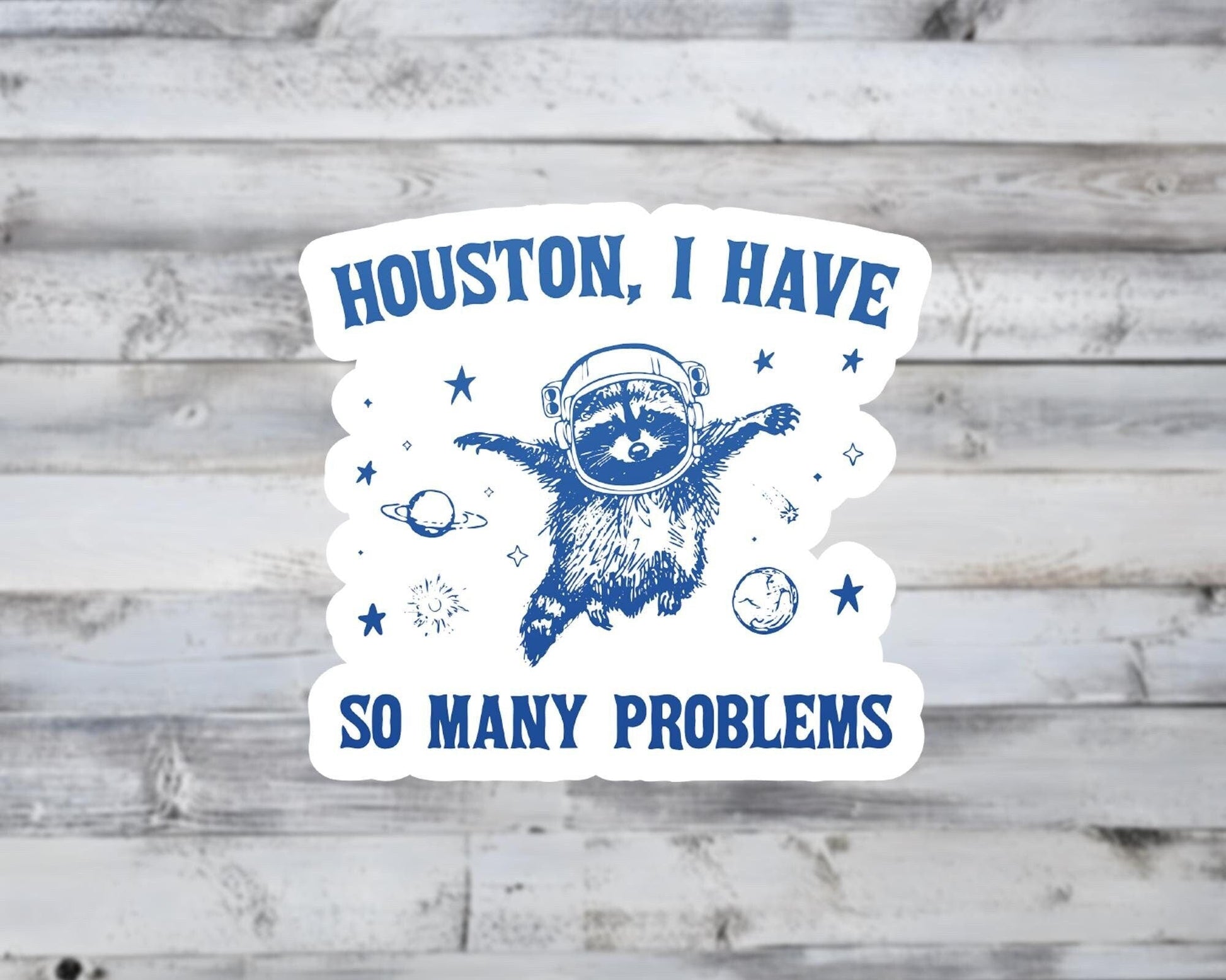 Our Houston, I Have So Many Problems Vinyl Sticker is waterproof, durable, and perfect for personalizing your laptops, water bottles, phone cases, tablets, Kindles, planners, notebooks, journals, tumblers, mugs, mirrors, cars, motorcycles, and more!