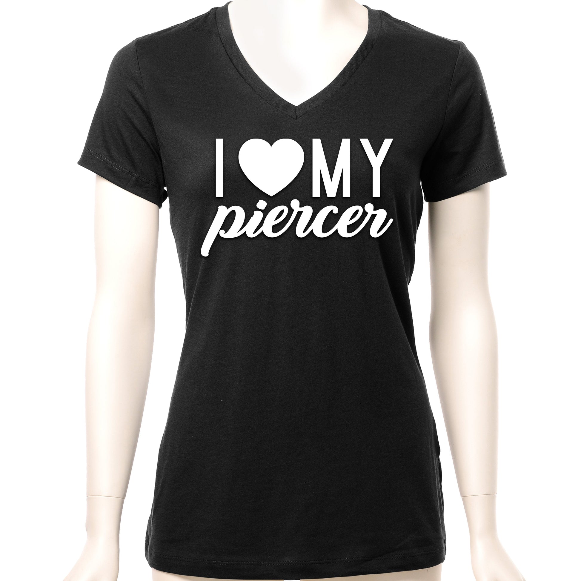 I Heart My Piercer Black Tapered V-Neck Tee Shirt