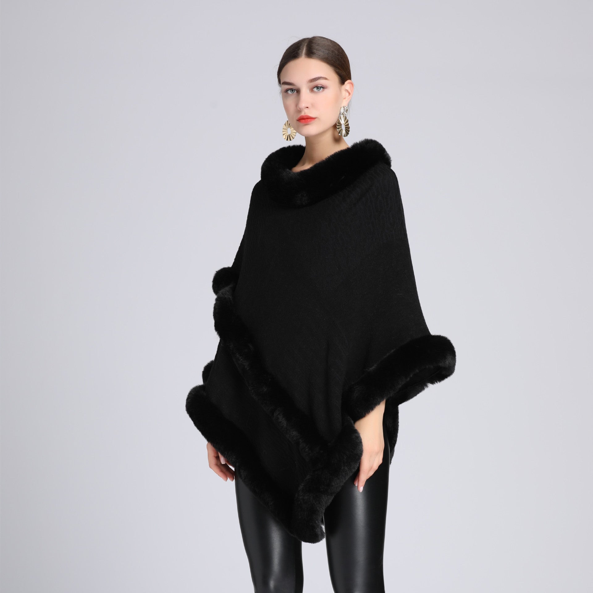 The Imitation Rex Rabbit Fur Collar adds a touch of glamor, giving you a sophisticated look without compromising on comfort. This cape is crafted from soft imitation cashmere, ensuring it feels great against your skin. The main fabric composition is made of high-quality polyester fiber, making it durable and easy to maintain.