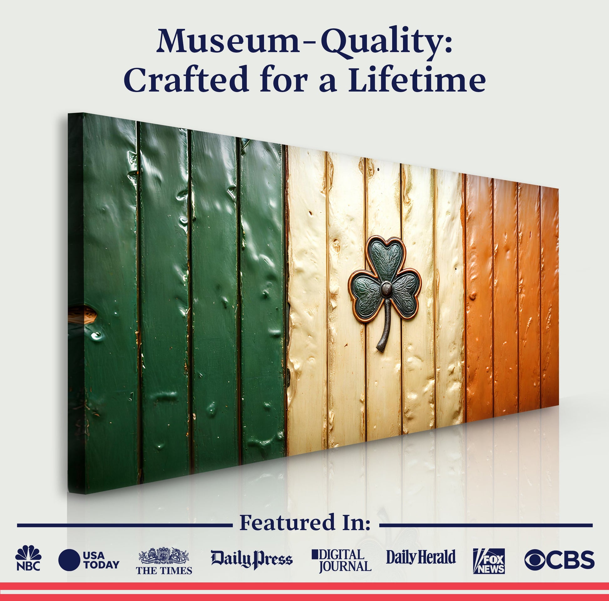 Celebrate Irish pride and tradition with this stunning canvas wall art, featuring the Irish flag colors in a rustic wooden design, beautifully accented by a classic shamrock symbol in the center. This piece exudes a warm, vintage charm, making it a perfect addition to any home, pub, or space that embraces Irish culture.