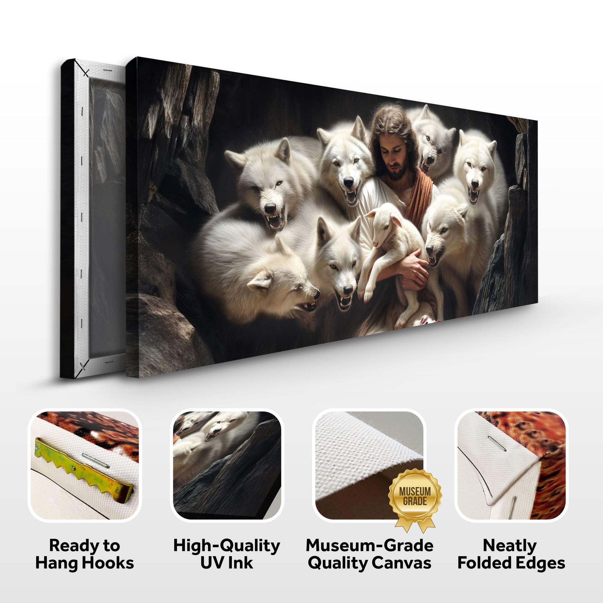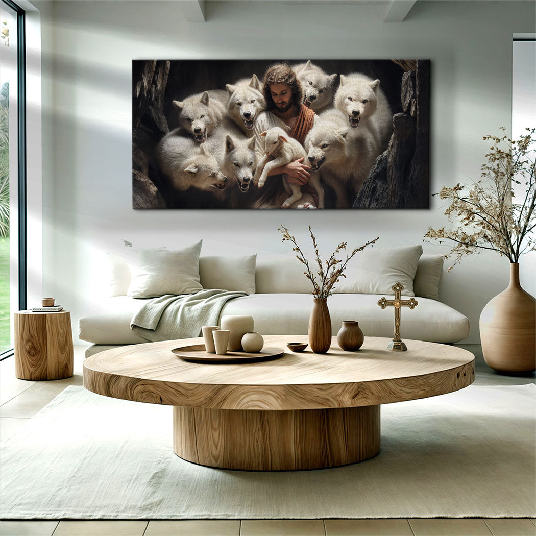 Jesus Protects The Lamb From Wolves Faith Wall Art IV