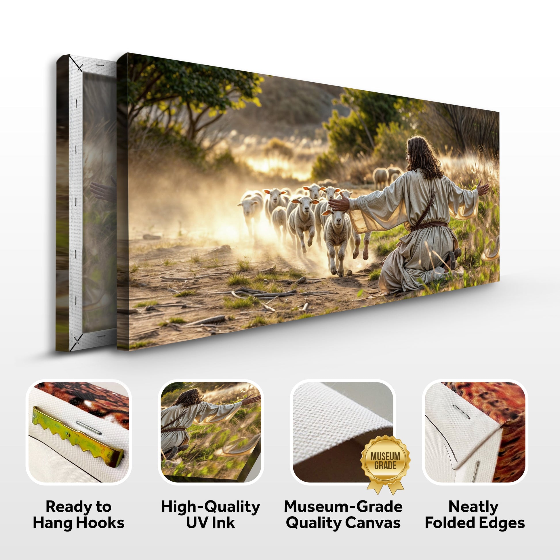 Jesus Protects The Lamb From Wolves Faith Wall Art VIII