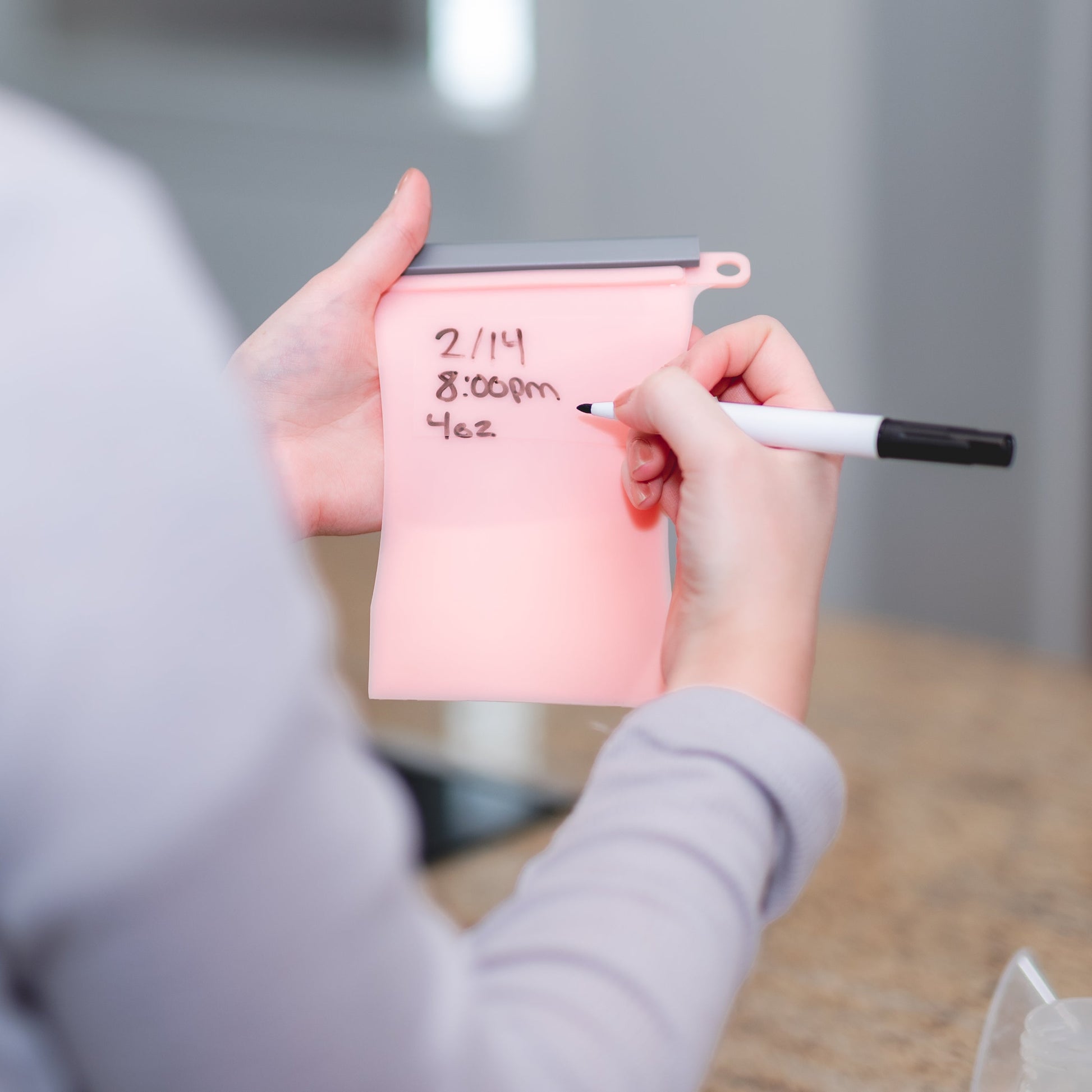 Use junobie breast milk bag dry erase markers to confidently write the name, date, time, and ounces of expressed milk! The dry erase marker lets you write on silicone products and erase using a dry cloth. Keep your silicone products organized.