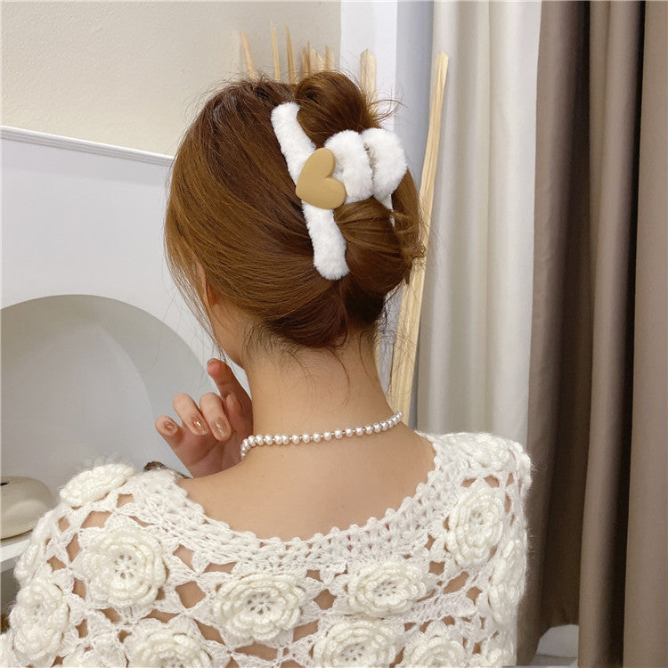 Embrace your stylish side with the Korea Dongdaemun Love Plush Grab Clip, where fashion meets practicality!