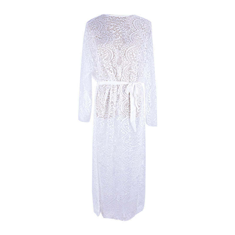 Designed in a versatile one-size-fits-all, the lace bikini blouse features a full length from shoulder to shoulder of approximately 130 cm, accommodating various body types with grace. The shoulder width measures about 57 cm, while the sleeve length is approximately 34 cm, allowing for ease of movement. Whether you pair it with your favorite bikini or a swimsuit, this cardigan will elevate your beach attire.