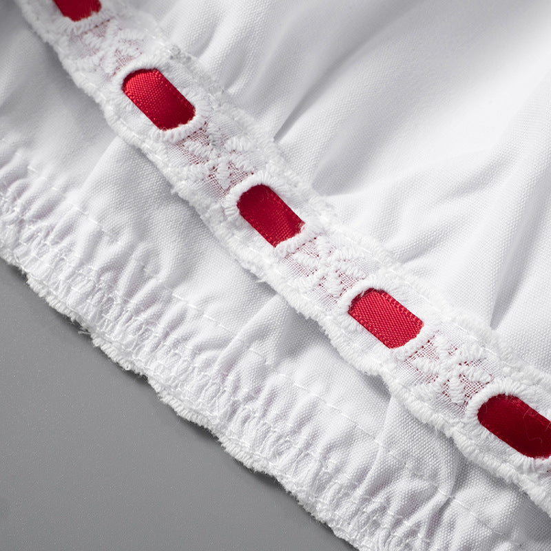 These shorts feature a delightful lace bow contrast that adds a touch of whimsy and charm. The beautiful white color complements a range of tops and accessories, allowing for endless styling possibilities. With a mid-waist design, they provide a flattering fit that accentuates your waist while keeping you comfortable all day long.