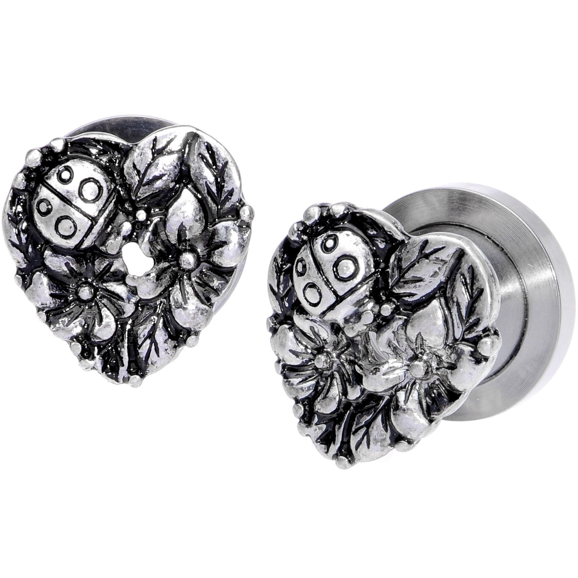 Wow, so cute! The ladybugs on these 0 gauge tunnel plug earrings are crawling around on a garden of flowers shaped in a heart. Made with durable 316L surgical grade stainless steel, these tunnels feature a heart-shaped ladybug charm and are made in a double flare style for secure wear. Sold as a set of two for you! NOTE: Prices of plugs may vary based on plug ear gauge size selected from drop down. Specifications