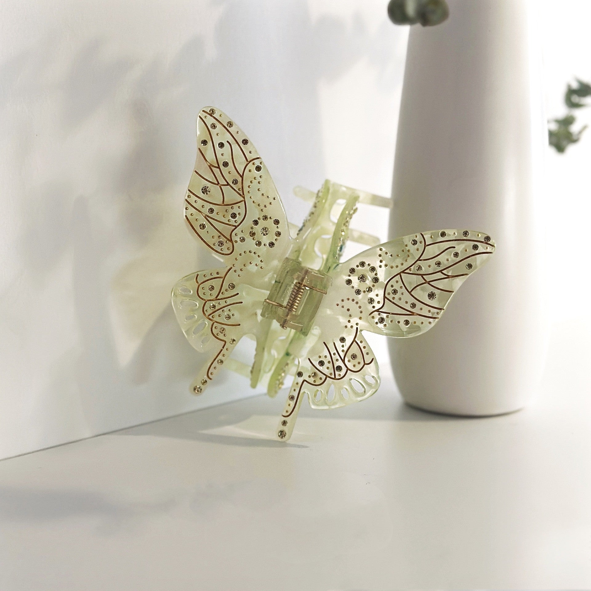 Crafted from high-quality acetic acid material, it is designed for durability and comfort. The butterfly motif lends a whimsical charm that appeals to fashion-forward individuals. With its natural style, this hair claw seamlessly integrates into various fashion trends, enhancing any outfit effortlessly.