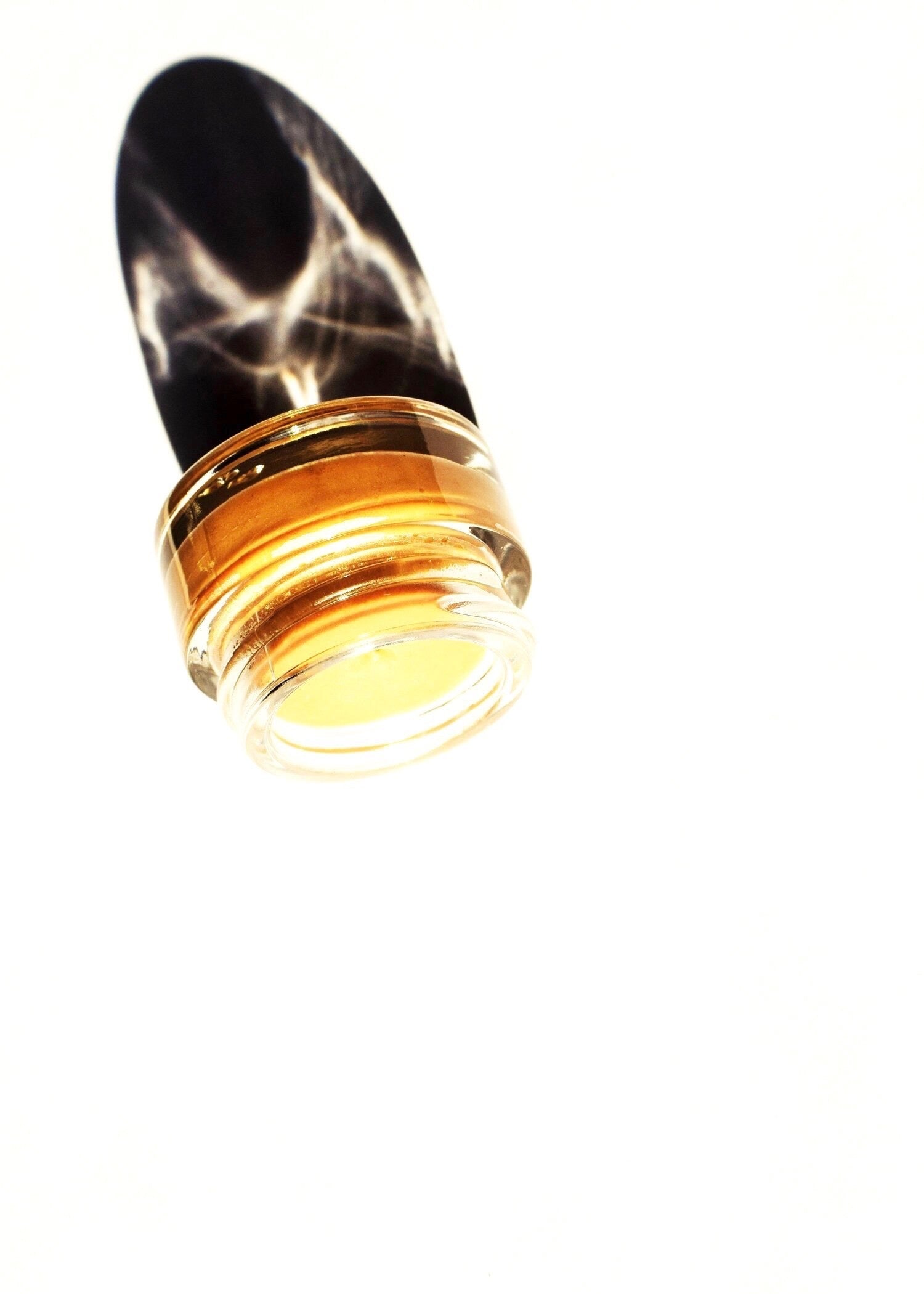 this is a balm to be used anyway you’d like according to the ingredients. there is a beige tin to it, it’s super glossy, absorbable. contains a ton of kaolin clay and complimenting sericite mica for shine. what can you do with this? it is up to you. experiment away with the formulation to highlight, mooden shade, gloss body, moisturizing mask, lip care, eye shadow gloss.