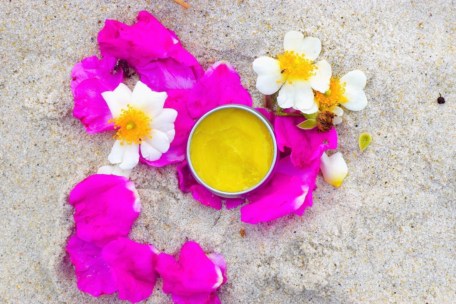 Ingredients: extra virgin olive oil* (Olea europaea), calendula flowers* (Calendula officinalis), raw unrefined shea butter* (Butyrospermum parkii), unrefined apricot kernel oil* (Prunus armeniaca), cold pressed and winterized rosehip seed oil* (Rosa canina), meadowfoam seed oil* (Limnanthes alba), naturally garden grown beach rose petals (Rosa rugosa), lavender flowers* (Lavandula angustifolia), local beeswax + love. *purveyed certified organic ingredients