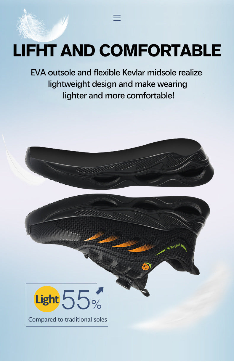 - Breathable Upper Material: The shoe upper, made from high-quality steel wire cloth, promotes airflow, keeping your feet cool and comfortable even during prolonged wear.