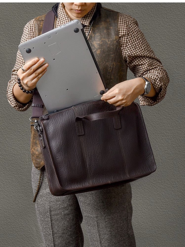 Elevate your style with the Men's Thick Cowhide Commuter Leather Handbag, designed for the modern man who values both function and fashion. Crafted from first layer cowhide leather, this handbag showcases durability and sophistication. The rich texture of the leather not only looks stunning but also ensures that the bag ages beautifully over time. Whether you're heading to work, hitting the gym, or exploring the city, this handbag is your perfect companion.