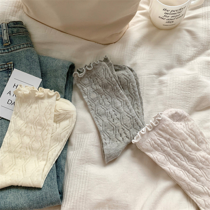 Mesh Hollow Wooden Ear Mid-Calf Socks