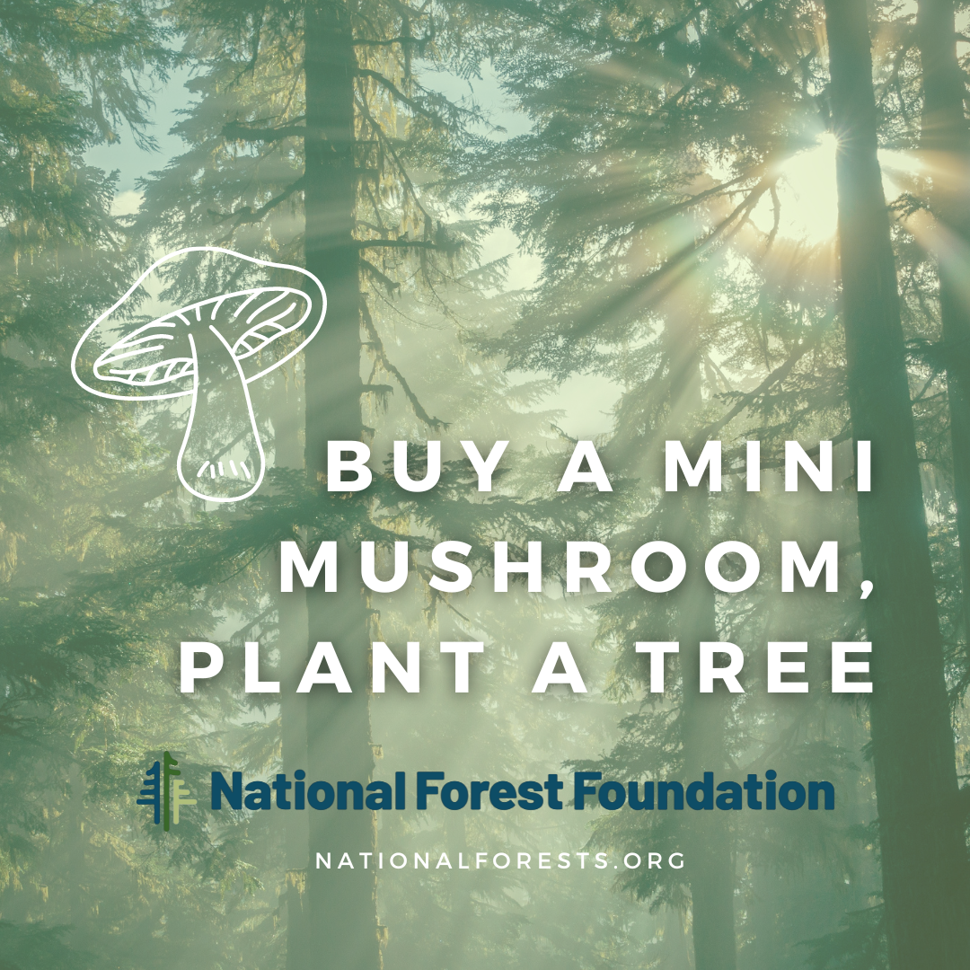 These precious mini crystal mushrooms are a delightful gift! Hand carved and then tumbled for a smooth polished surface. With every purchase of a mini crystal mushroom, a tree is planted through a donation to the National Forest Foundation.