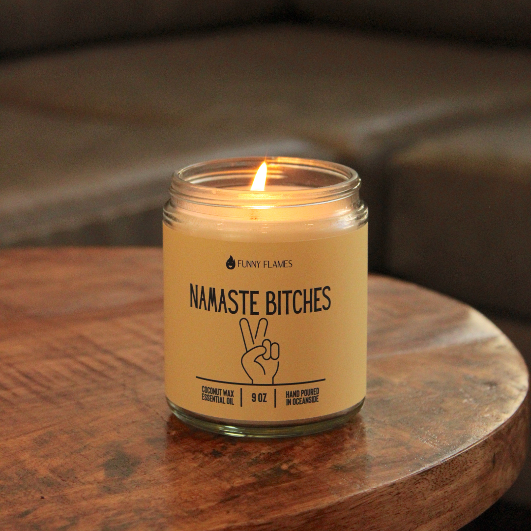 Namaste B*TCHES! This candle is Nag Champa scented. Just like Lavender, Nag Champa has a soothing fragrance that helps relax your nerves and reduce stress.