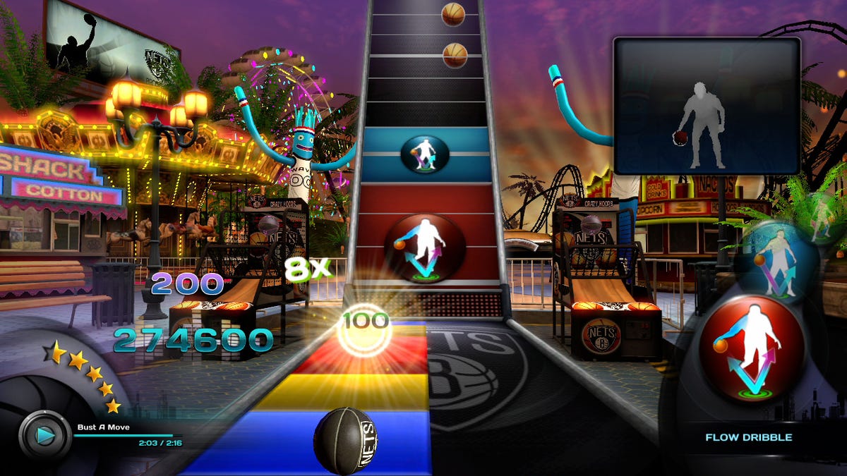 Aspire to perform like a pro in NBA Baller Beats as you train alongside your favorite NBA franchise unlocking songs, difficulty levels, and over 100 posters and trading cards showcasing NBA players' greatest moves. The music is your guide as you master ball handling skills, dribbling, and baller moves with a real basketball as Kinect technology tracks your every crossover, pump fake, behind-the-back, around-the-world and more! Become the ultimate baller and increase your stamina in single player mode, break it down and practice different skills in Move School mode or show-off in multiplayer mode and go head-to-head against up to 8 players - the highest score wins bragging rights. No matter the level of your skills, players of all abilities will enjoy getting off the couch and raising their game with NBA Baller Beats.