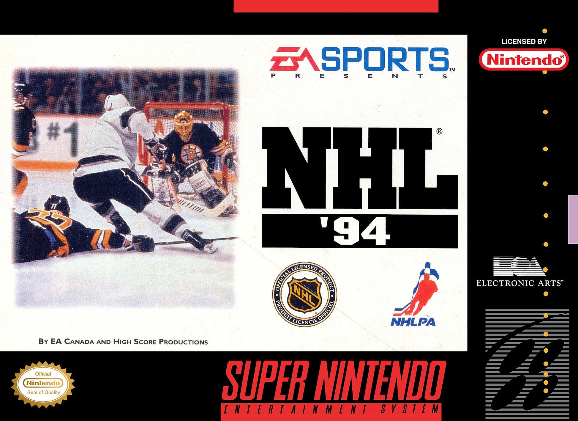 Over 25 NEW features in HOCKEY '94! 4-Way Play Support - Use the EA Sports 4-Way Play and NHL '94 becomes a 1, 2, 3 or 4 player game! Goalie Control - You control the double pad stacks and kick saves of all the greats. Penalty Shots and Shootout Mode - Take the hottest shooters and go head to head with the greatest goalies in the league. One Timers - New blistering slap shots make offense faster and more challenging. New Expansion Teams - Play with the Mighty Ducks or with the Florida Panthers. Music and Animations - Over 70 new pieces of organ music from arenas around the league. Plus new crowd and player animations!
