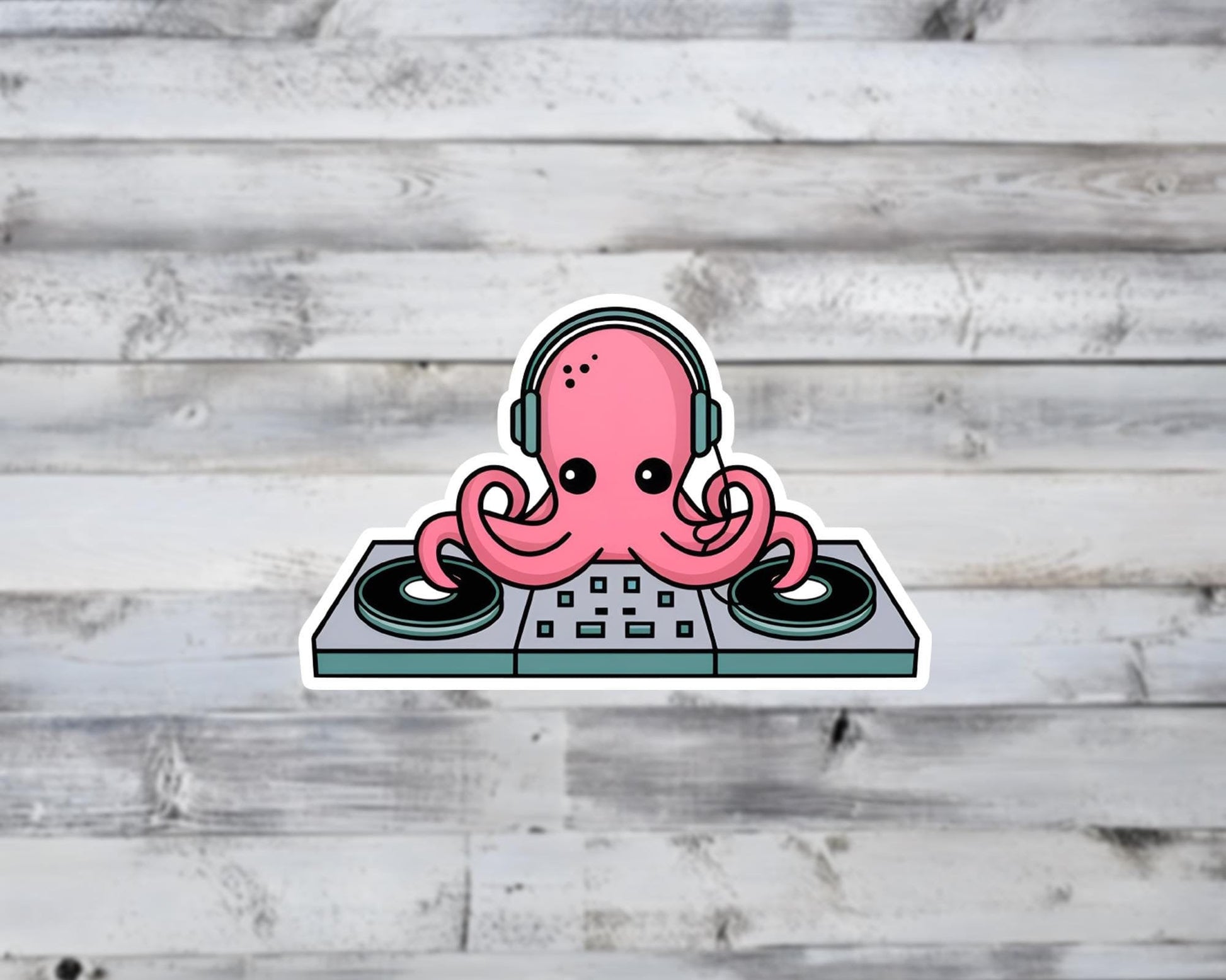Our Octopus DJ Vinyl Sticker – Fun DJ-Inspired Design, Cute and Quirky Vinyl Sticker. Perfect Gift for DJs, Music Lovers, Gamers is waterproof, durable, and perfect for personalizing your laptops, water bottles, phone cases, tablets, Kindles, planners, notebooks, journals, tumblers, mugs, mirrors, cars, motorcycles, and more!
