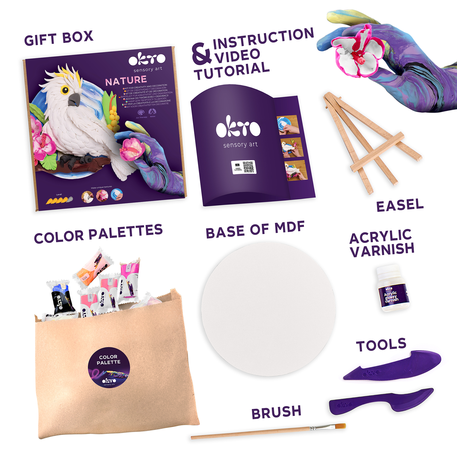 OKTO Air-Dry Clay 3D Painting Kit – 3D Cockatoo (11.4 x 11.4 in)