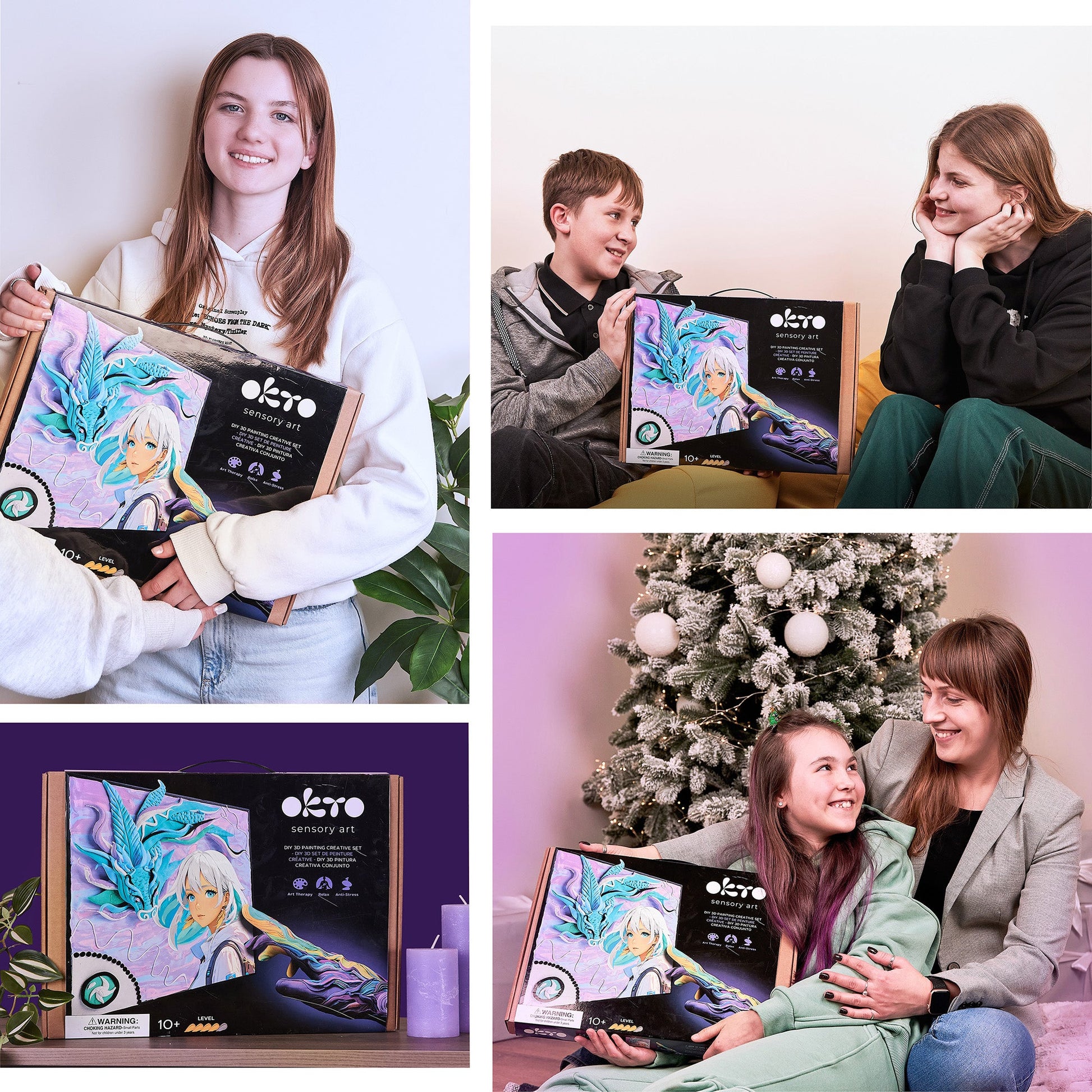 - How it works: press on numbered zones → layer for 3D depth → dry ~24h → seal & hang.