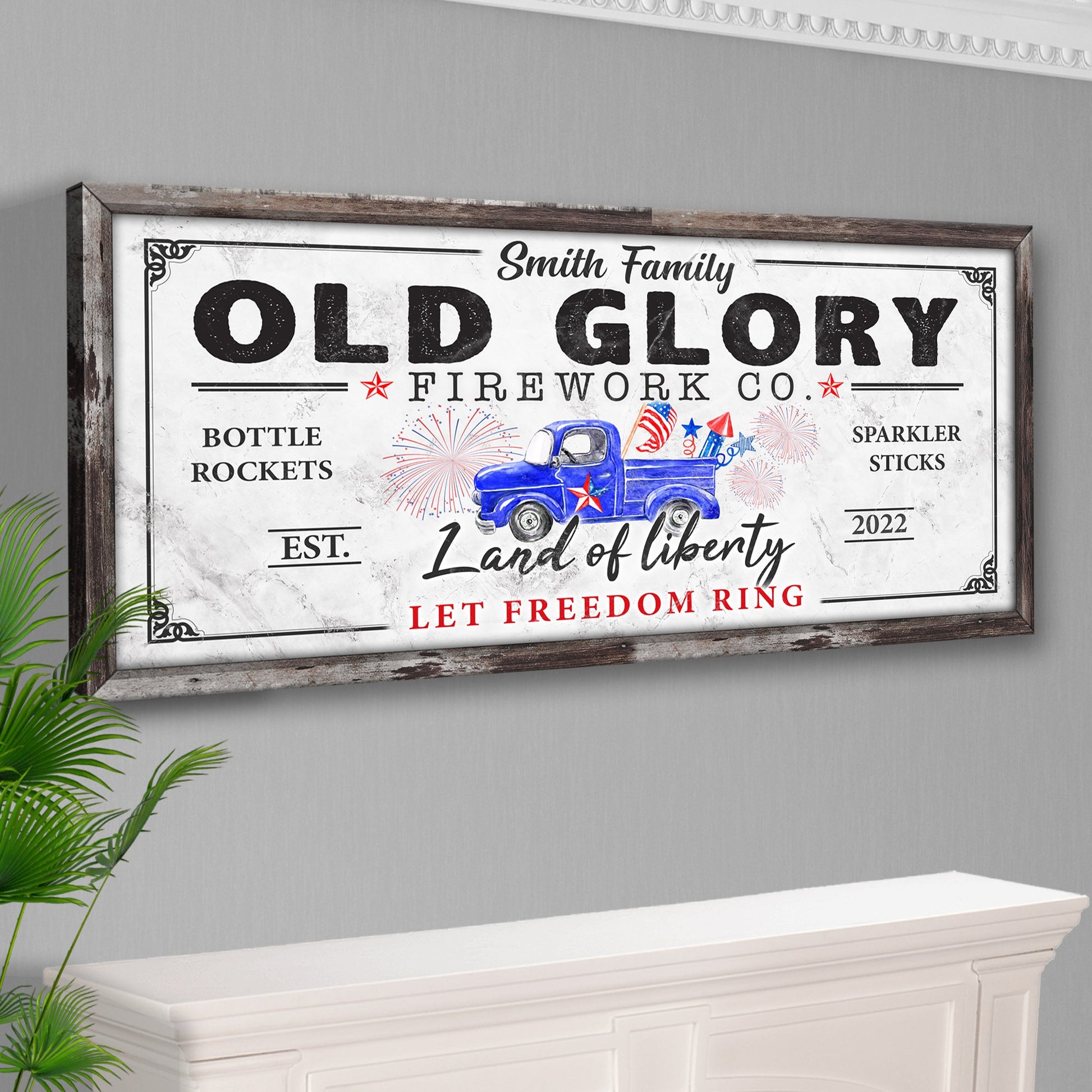 The sign is made from quality materials and will last for years. It's easy to hang on any wall, so it can be displayed in any room in your store, including your front window or backroom. Customize your Old Glory Firework Co Let Freedom Ring Wall Art and make it a focal point in your decor.