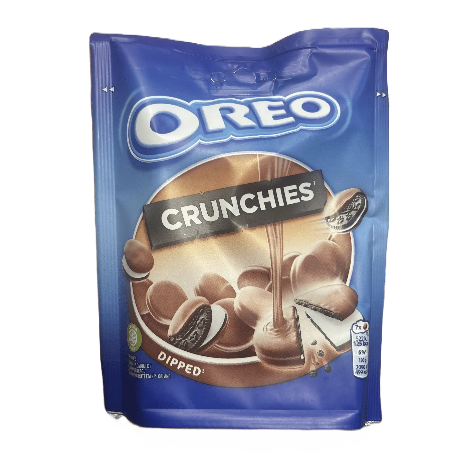 Delight in the bite-sized bliss of Oreo Crunchies, a Finnish favourite from Mondelez. These mini chocolate sandwich cookies feature a smooth vanilla crème centre, offering the classic Oreo taste in a fun, snackable form. Whether you're on the go, sharing with friends, or enjoying a solo treat, Oreo Crunchies are the perfect companion.