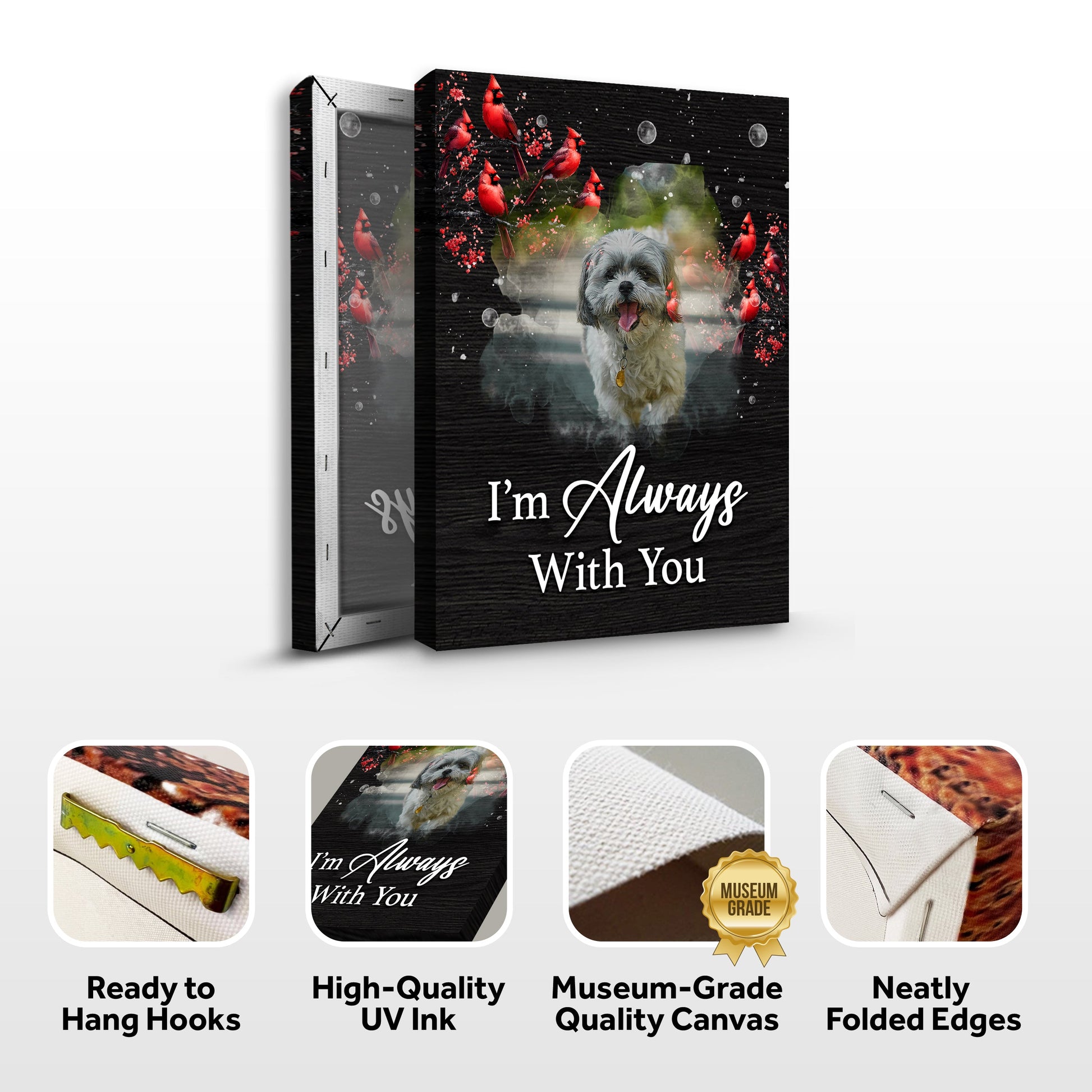 Let the memory of your beloved family member live on with this custom dog memorial pet loss frame portrait. Take comfort in the elegant wood patterns that will complement any photo canvas for any home décor style. Hang this passing gift in your pet's favorite room as a fitting tribute to the happy memories that you once shared.