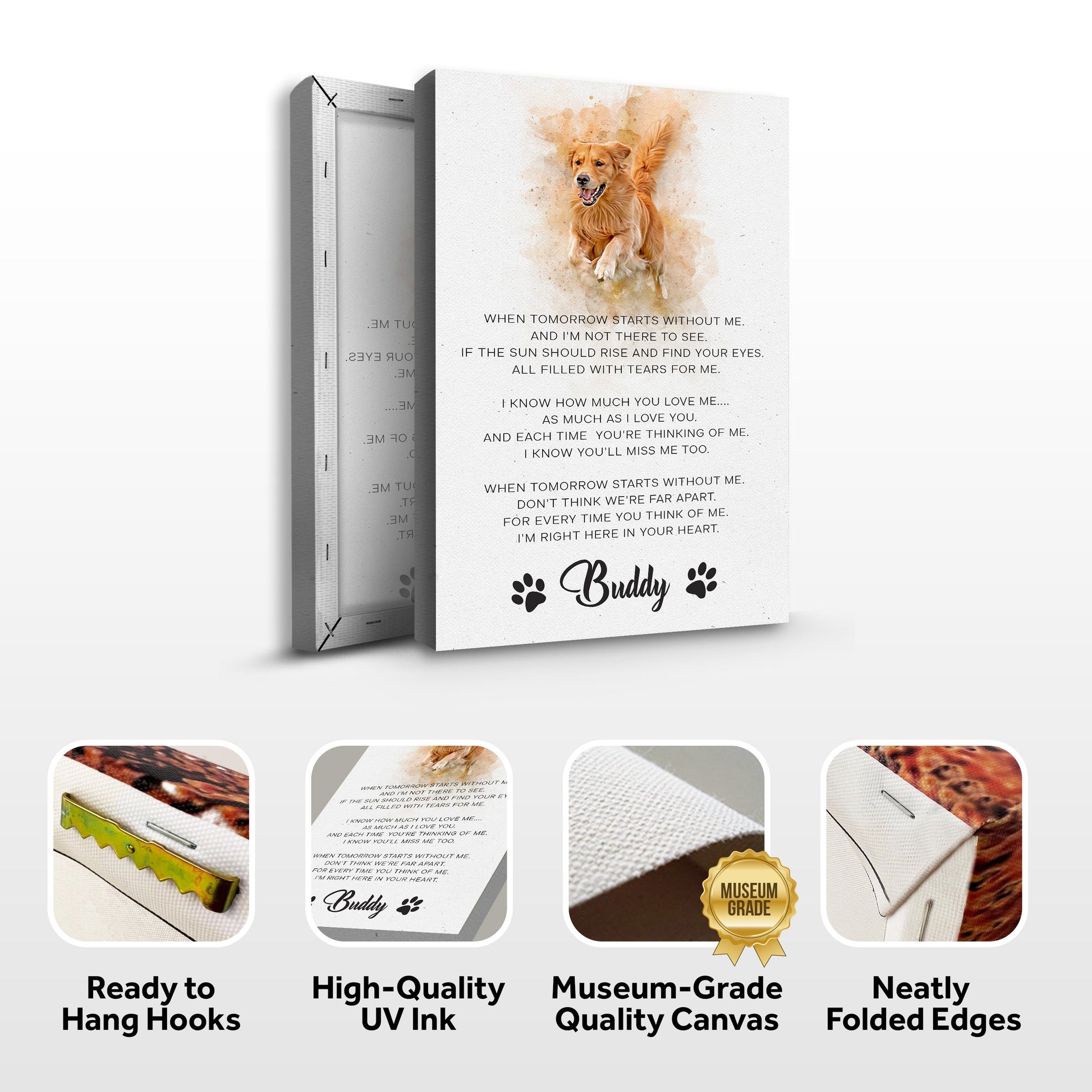Let the memory of your beloved family member live on with this custom dog memorial pet loss frame portrait. Take comfort in the elegant wood patterns that will complement any photo canvas for any home décor style. Hang this passing gift in your pet's favorite room as a fitting tribute to the happy memories that you once shared.